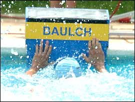 Two real contenders for the Superstars title emerged from heat three. Despite the battling efforts of badminton ace Simon Archer, Alain Baxter and Jamie Baulch dominated this field. Baxter, the British skier, tasted success four times, excelling in events as varied as the gym tests and the mountain biking. And, when he fell short, 400m runner Baulch stepped into the breach, winning the football, the 800m and the swim. Baulch was at least made to sweat by Archer, who forced him into a dead-heat for second spot in the kayak. But the other athletes were well off the pace. Former track star Derek Redmond looked humiliation in the face when snooker's Paul Hunter threatened to overtake him. And he was not the only one to feel the Hunter's cold stare. Rugby veteran Gavin Hastings will have nightmares about the 100m for ages, after losing out in a photo finish to the cuesman from Leeds. Jamie Delgado represented the tennis world in solid fashion. But Caribbean cricket star Jimmy Adams was pretty relaxed about the whole affair, which was just as well because he was comprehensively out-kayaked by - of all people - jockey Richard Dunwoody.