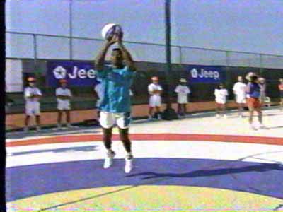 Kelly Gruber (center) barely defeats Merril Hoge of the Pittsburgh Steelers (bottom)